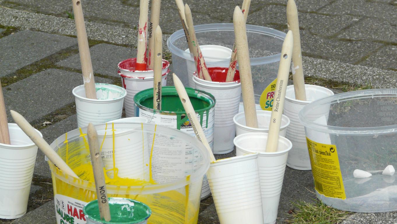 Gemeinsam mit einigen hilfsbereiten Eltern wurde heute die Schulhofbemalung erneuert. In frischem Farb-Glanz erstrahlen nun wieder Spielflächen wie Hinkelkästchen, ein größeres Feld für das bei den Kindern sehr beliebte Spiel „Abwerfen“, eine 50-Meter-Wurf-Bahn und eine 150-Meter-Lauf-Runde um den Schulhof.